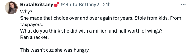 The food was meant for children learning remotely at the time due to COVID-19 and was available for parents to collect from the school if need be. Liddell was found guilty of theft and operating a criminal enterprise for taking $1.5 million worth of products from the batch for her own use.