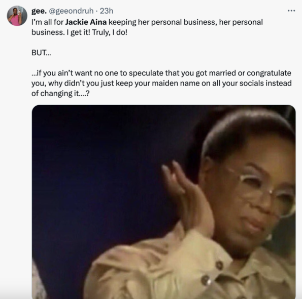 Rumors that Jackie Aina privately tied the knot spread after she changed her name on social media to Jackie Asamoah.
