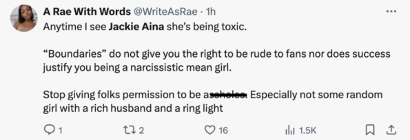 Jackie Aina has sparked an online debate on influencers and privacy. The famed YouTuber and social media star is trending on X (formerly Twitter) as fans call her out for allegedly blocking people who congratulate her amid speculation she’s married.