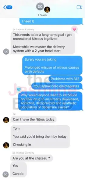 Milo Yiannopoulos, who has publicly accused Dr. Thomas Connelly of enabling Ye’s nitrous use, shared these texts as part of a broader claim that Connelly has been illegally supplying Ye with the gas.
