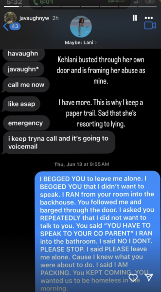 Meanwhile, Young-White has since responded with a series of screenshot text messages that he said is between him and Kehlani. See those below.
