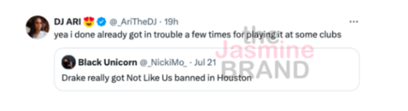 This isn’t the first time someone has spoken about making sure Drake isn’t around when “Not Like Us” is played. As previously reported, in July a DJ claimed Drake had the tune pulled from the playlist of several Houston nightclubs. The rapper recently shared his new state-issue ID following his move to Texas.