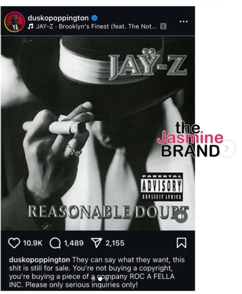 On Tuesday, Aug. 13, Dame Dash hopped on Instagram to share a photo of Reasonable Doubt’s iconic cover art and claimed the album is still for sale despite reports Jay-Z filed for ownership of the legendary project.