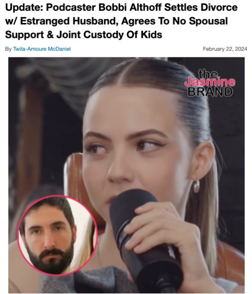 Looks like podcaster Bobbi Althoff and her ex husband Cory Althoff are officially split.