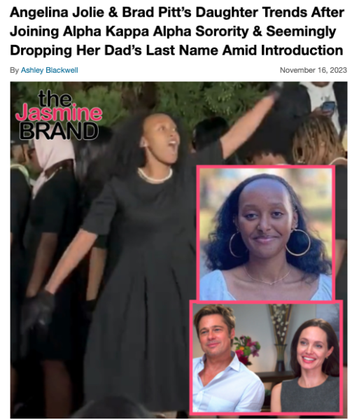 The source reportedly added that the “Bullet Train” star was “unaware” the relationship between him and Shiloh had changed so drastically and thought they were “on good, solid ground.” However, Shiloh isn’t the first of the Jolie-Pitt clan to make a statement against their dad. As previously covered, Zahara notably introduced herself as ‘Zahara Marley Jolie’ while crossing Alpha Kappa Alpha sorority in November last year.