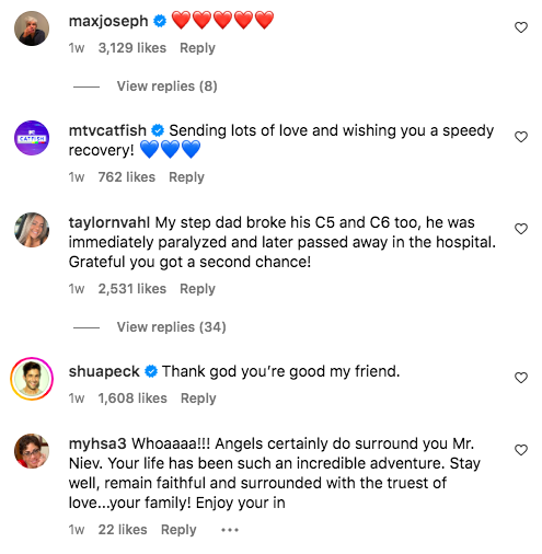 Nev also noted that he believes the accident could have been avoided had there been a bike lane in the area where he was hit by the truck. Fans, friends, and loved ones have flooded his IG comment section with well wishes.