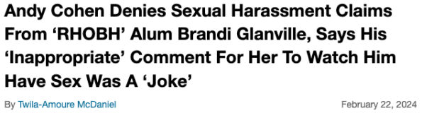 Brandi Glanville reportedly made several accusations against her former boss, shortly after releasing the documents to the media. As we’ve previously covered, the entertainer has been calling out Andy Cohen for months now, condemning him for allegedly abusing his power as her employer and crossing a professional line by asking if she wanted to watch him have sex on FaceTime.
