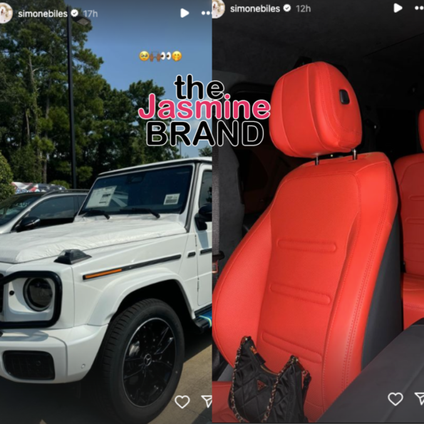 In serval images posted to her Instagram story, Simone Biles uploaded pictures of her new all white Mercedes G-Wagon truck, sharing that she’s getting rid of her older Black model. One image showed the inside of the vehicle, which is decked out with red leather seats.