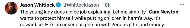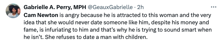 Dr. Bryant went on to explain that Newton’s “selfish actions” based on fear is what makes the behavior “low functioning,” noting that his attempts to compartmentalize hurts everyone involved. In case you’re unfamiliar, the QB shares 4 biological children with his ex fiancée Kia Proctor, and also took the responsibility of fathering her eldest child from a previous marriage, and additionally shares a biological child with his ex LaReina Shaw, and also fathers her son from a previous relationship.