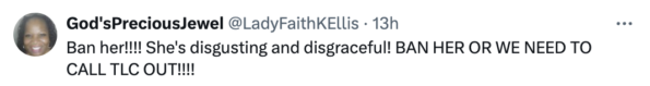 “Ban her!!!! She’s disgusting and disgraceful! BAN HER OR WE NEED TO CALL TLC OUT!!!!”