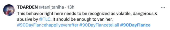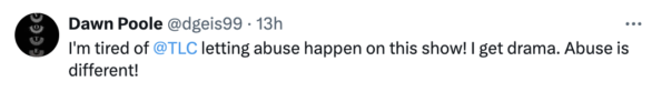 “I’m tired of @TLC letting abuse happen on this show! I get drama. Abuse is different!”