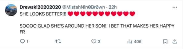 “SHE LOOKS BETTER!!! — SOOOO GLAD SHE’S AROUND HER SON!! I BET THAT MAKES HER HAPPY FR”