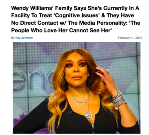 The latest picture of Wendy marks the first time she’s been spotted out in public in over a year. The entertainer has been keeping a very low profile since news of her frontotemporal dementia diagnosis was revealed in Feb. 2023.