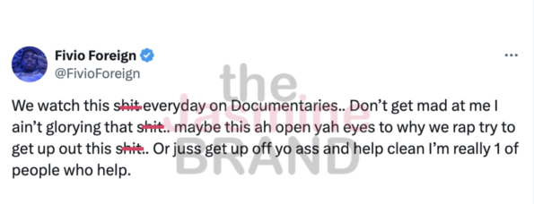 “We watch this sh*t everyday on Documentaries.. Don’t get mad at me I ain’t glorying that sh*t.. maybe this ah open yah eyes to why we rap try to get up out this sh*t.. Or juss get up off yo ass and help clean I’m really 1 of people who help.”