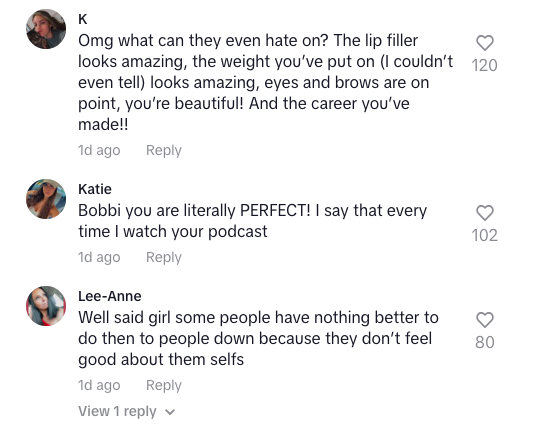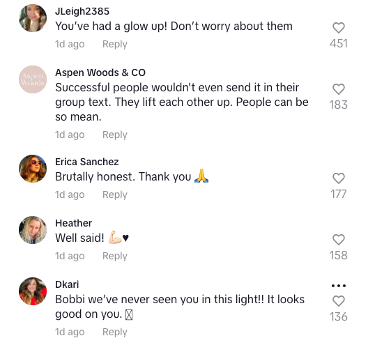 Before removing the video this morning (Aug. 28), many fans flooded Bobbi’s comment section with uplifting and agreeing remarks.