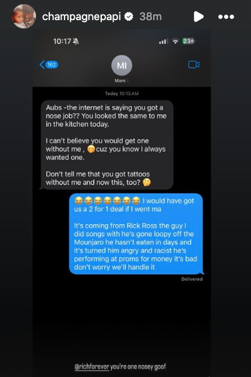 Drake fired back, alleging in a text exchange that Ross had “gone loopy”:
