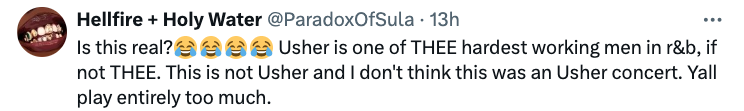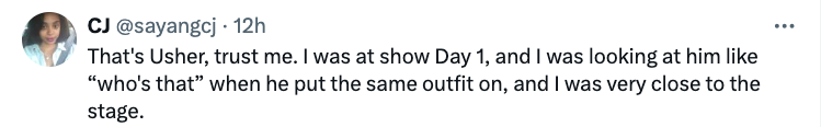 Other commenters, namely those who attended Usher’s concerts in Washington, however, were adamant that they got the real deal. Some argued that the video may not be from the actual concert at all. One user even shared their own video of the singer performing the same song in the same outfit, and from their angle, it’s clear as day that it’s Usher hitting the stage.