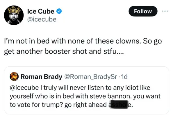 However, Ice Cube swiftly responded to the user and said,