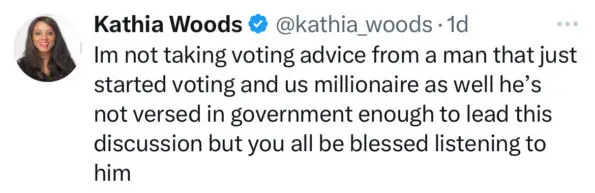 “Be skeptical of anybody telling you to vote and not telling you to ask for anything or to tell you to just vote and not to get anything for you vote. That’s not how it works. That’s not the process. You don’t vote just to vote. You vote because you’re getting something, or your community is getting something.”