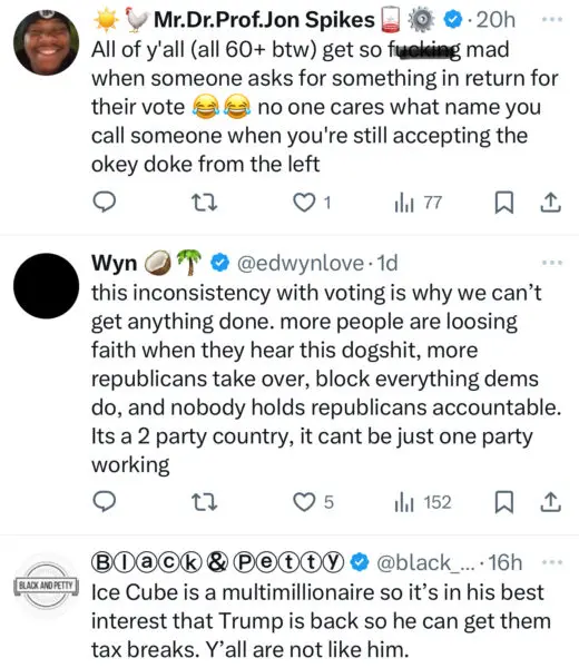 Despite Ice Cube shutting down the growing theories surrounding his political pov, social media users didn’t hold back their thoughts on his remarks.