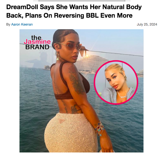 BBLs, a once popular cosmetic procedure, seem to be gaining more bad press by the day. As recently reported, rapper DreamDoll shared in July that she’s reverting to her natural body. When asked if BBLs are going out of style, she added,