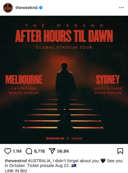 Until the album’s release, The Weeknd will perform a major one-off show in São Paulo on September 7, which will be streamed live on YouTube. Additionally, he will conclude his After Hours tour next month with two stadium shows each in Melbourne and Sydney.