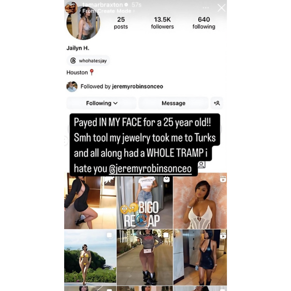 Just hours ago we reported claims from Tamar Braxton that Jeremy Robinson cheated on her. Soon after, the person she accused of being the other woman, Jailyn H, exclusively shared in our comment section that the “Love & War” artist was “wrong” and her allegations were “absolutely insane.”