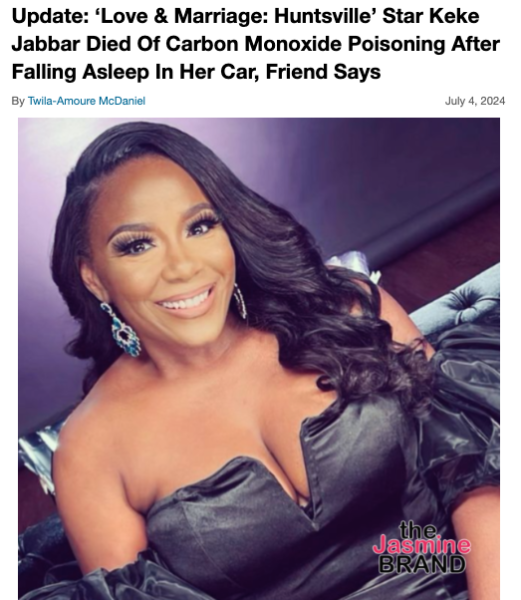 ‘Love & Marriage: Huntsville’ Star Keke Jabbar’s Official Cause Of Death Ruled As Carbon Monoxide Poisoning