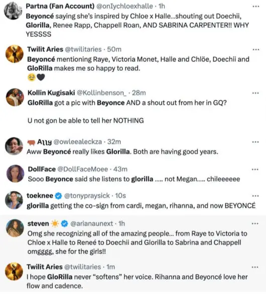 On social media, Beyoncé’s mention of GloRilla has sparked excitement among fans.