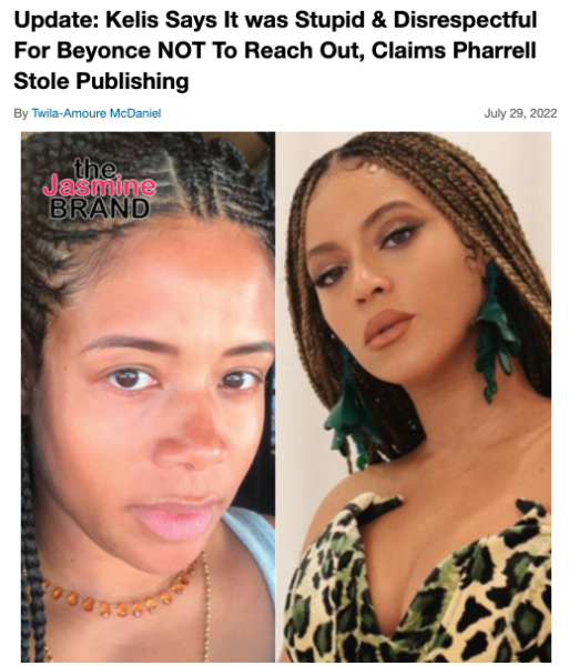 If you recall, Kelis aired out her professional frustrations with Beyoncé and Pharell after the former released her “Renaissance” album, which initially featured an interpolation of “Milkshake” for her song “Energy.” Kelis argued that it was “ignorant” and “disrespectful” of Beyoncé to not reach out to her before adding the sample to her project, and accused Pharrell of stealing the publishing rights to the song among other things. Ultimately, Beyoncé quietly removed the sample altogether without publicly addressing Kelis‘ grievances.