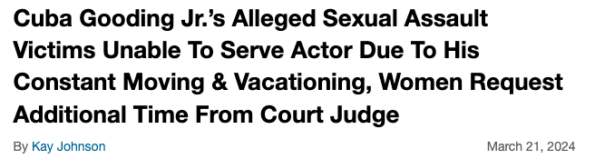 Documents obtained by AllHipHop show that the former Diddy collaborator is seeking an extension to get the complaint to Cuba Gooding Jr., who he accused of sexual assault.