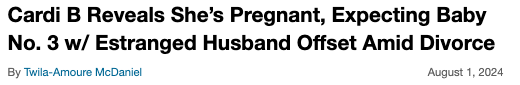 Original Story: (Sep 10, 2024): Rap star Cardi B and her estranged husband Offset have allegedly welcomed their third child!