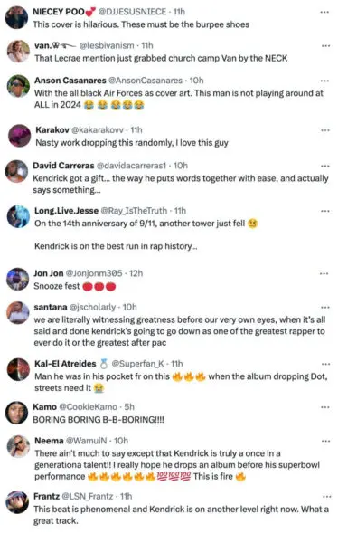 Fans online were quick to weigh in, dissecting the lyrics and urging Kendrick to drop an album.