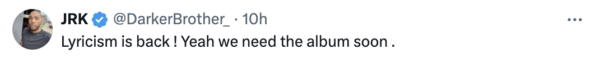 “Lyricism is back! Yeah, we need the album soon.”
