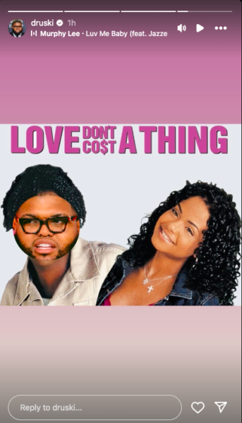 Reacting to Rubi Rose’s X posts where she said their entire relationship was just one big publicity stunt, Druski shared a meme of the 2003 remake of Love Don’t Cost a Thing. However, in place of Nick Cannon, who starred in the film alongside Christina Milian, Druski photoshopped in his own face.