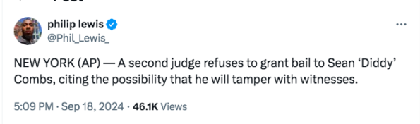 News just broke that the record executive has been denied bail for the second time. According to journalist Philip Lewis, a second judge didn’t accept Diddy’s updated proposed bail package over concerns he would “tamper with witnesses” if released.