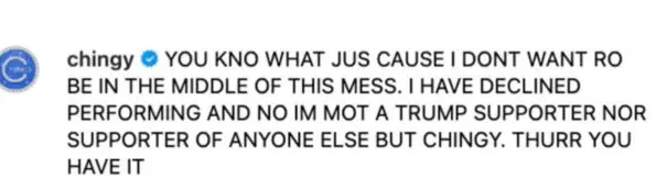 Original Story (Sept. 21, 2024): Chingy is unbothered by the folks criticizing his upcoming Donald Trump performance.