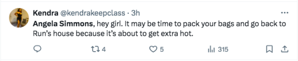 “Angela Simmons, hey girl. It may be time to pack your bags and go back to Run’s house because it’s about to get extra hot.”