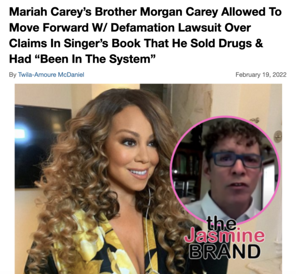 Court documents obtained by In Touch Weekly reveal that Morgan Carey sued Mariah Carey in 2021 over claims made in her memoir, The Meaning of Mariah Carey. In his lawsuit, he alleged that she falsely accused him of being violent and dealing drugs during their childhood.