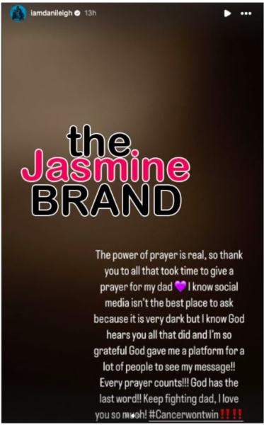 “The power of prayer is real, so thank you to all that took time to give a prayer for my dad. I know social media isn’t the best place to ask because it is very dark but I know God hears you all that did and I’m so grateful God gave me a platform for a lot of people to see my message!! Every prayer counts!!!!”