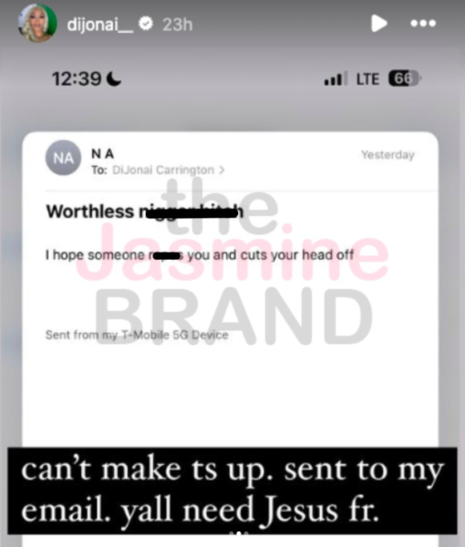 Connecticut Suns start DiJonai Carrington shared a post to her Instagram story earlier today (Thursday, September 26th) that revealed an alarming and threatening message sent to her that contained a racial slur and threat of sexual assault.