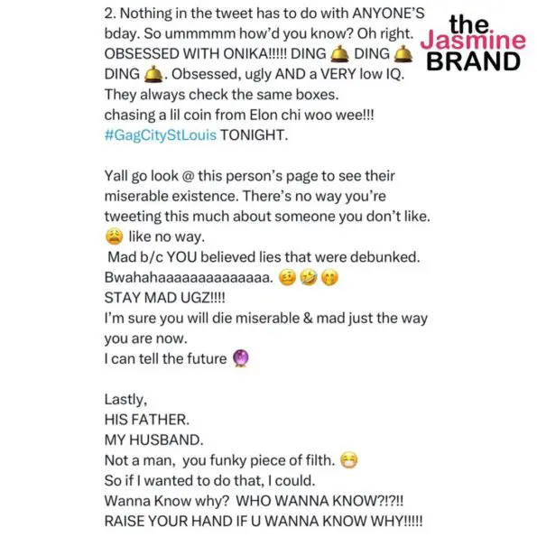 Dear weak loser tweeting about someone else’s bday b/c you have nothing to rejoice about in your own sad existence & clearly don’t feel loved & definitely not paid attention to due to your ugliness…