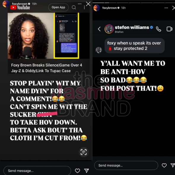 She also addressed a fan who told her to be careful if she speaks out about Jay-Z. Foxy Brown replied,