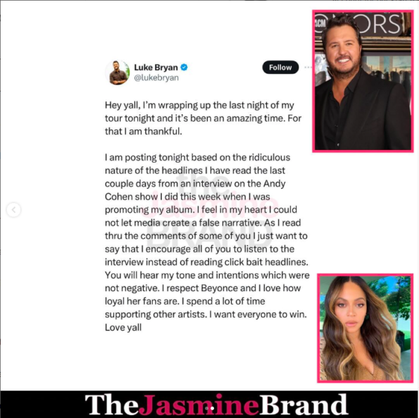 Following a previous interview with Andy Cohen, the country singer took to X (formally Twitter) to speak out against the backlash sparked by his thoughts on Beyoncé’s lack of nominations for her Cowboy Carter album.