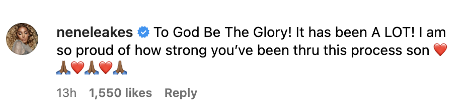 Brentt’s mom, NeNe responded to the post as well.