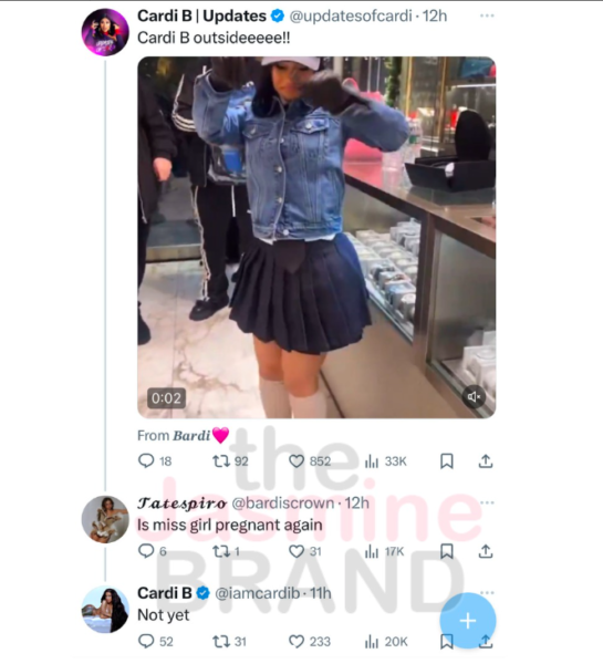 While responding to fans questioning whether she’s currently pregnant, the 32-year-old rapper playfully replied, “not yet,” hinting at her desire to have another child someday.