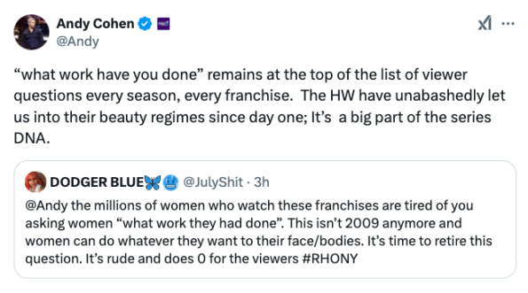 Andy Cohen Defends Asking ‘Real Housewives’ Stars ‘What Work They Had Done’ After Being Called Out By Viewer