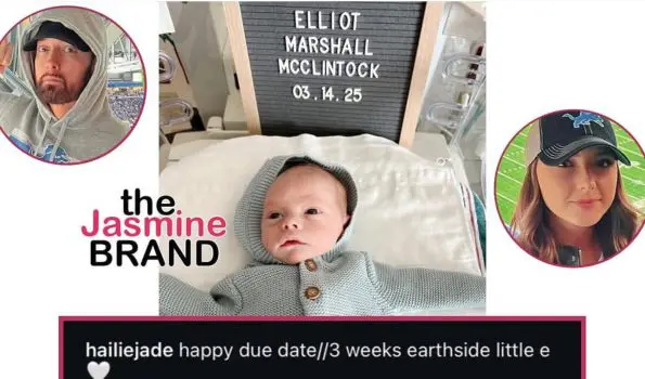 In an Instagram post, Hailie captioned the photo, “happy due date//3 weeks earthside little e ?,” revealing Elliot’s middle name honors her dad, whose real name is Marshall Mathers.