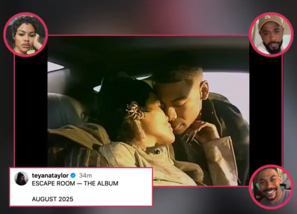 After TheJasmineBrand exclusively reported that she was back in the studio, Teyana has now confirmed the news with an official announcement. She posted a teaser on Instagram, featuring actors # LaKeith Stanfield and Aaron Pierre. The caption reads, “ESCAPE ROOM THE ALBUM AUGUST 2025.”