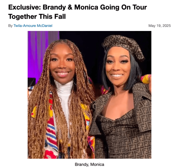 Brandy shared that the idea of a tour based on their 1998 collaborative hit “The Boy Is Mine”, which spent 27 weeks atop the Billboard Hot 100 chart, had been floated around ever since the song’s release.